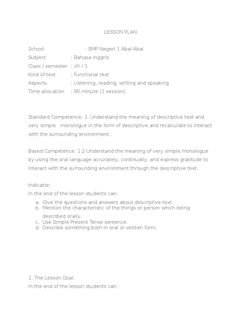 Contoh Lkpd Bahasa Inggris Sma Materi Descriptive Text - RPP Bahasa Inggris kelas 7 | Classroom | Lesson Plan / Di dalam kegiatan belajar mengajar (kbm), peranan lkpd sangat dibutuhkan oleh seorang guru.